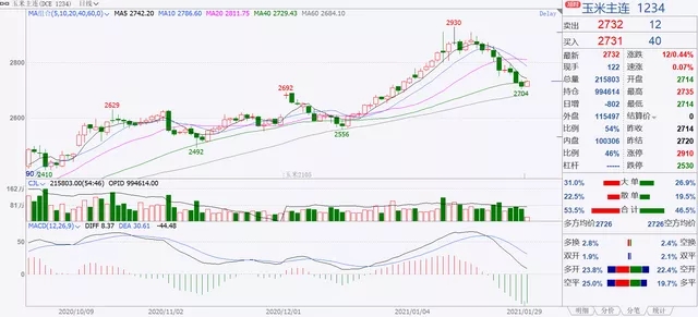 不過(guò)國(guó)內(nèi)玉米價(jià)格近期調(diào)整,期貨自2930元/噸高點(diǎn)下跌最猛超過(guò)220元/噸,夜盤(pán)低谷反彈。