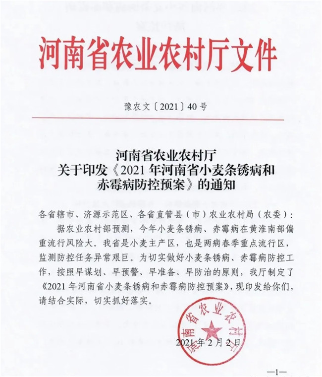 2021年河南省小麥條銹病和赤霉病防控預(yù)案