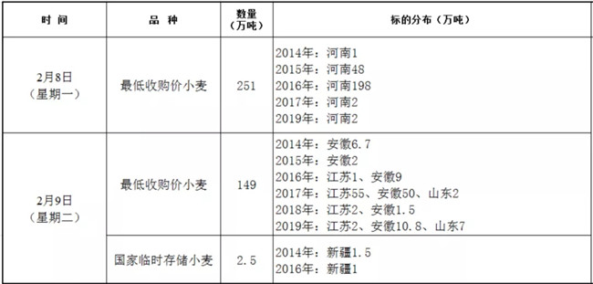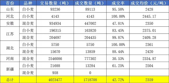 2月2日-3日政策性小麥各省成交統(tǒng)計