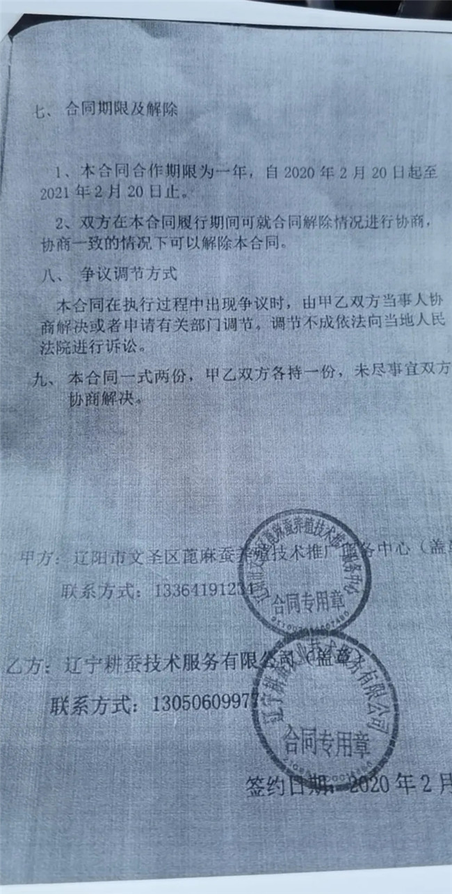 華夏早報(bào)-燈塔新聞了解到,耕蠶公司于去年4月份從遼陽市文圣區(qū)蓖麻蠶養(yǎng)殖技術(shù)推廣服務(wù)中心(以下簡稱“蓖麻蠶養(yǎng)殖推廣中心”)購得200公斤“淄蓖五號”蓖麻種子,花費(fèi)了2.4萬元,購買800盒蠶種,花費(fèi)了8萬元。萬冰稱,他們當(dāng)時(shí)預(yù)計(jì)種植800畝蓖麻子,如果畝產(chǎn)500斤,總產(chǎn)量將達(dá)到40萬斤;蓖麻蠶如果畝產(chǎn)300斤 ,總產(chǎn)量將達(dá)到24萬斤。