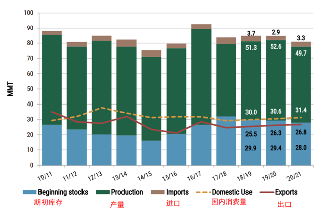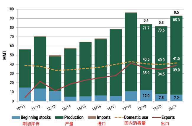 由于物流問(wèn)題影響供應(yīng),阿根廷2020/21年度的出口量預(yù)估也從1月的水平下調(diào)50萬(wàn)噸至1150萬(wàn)噸。一系列的勞資糾紛嚴(yán)重限制阿根廷港口的糧食運(yùn)輸。