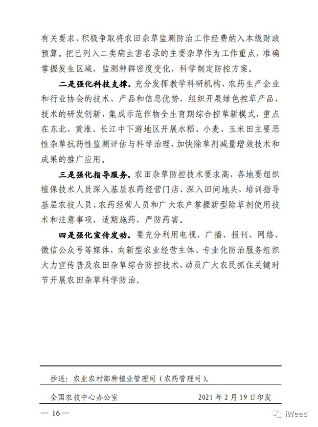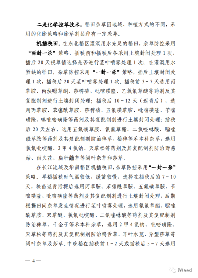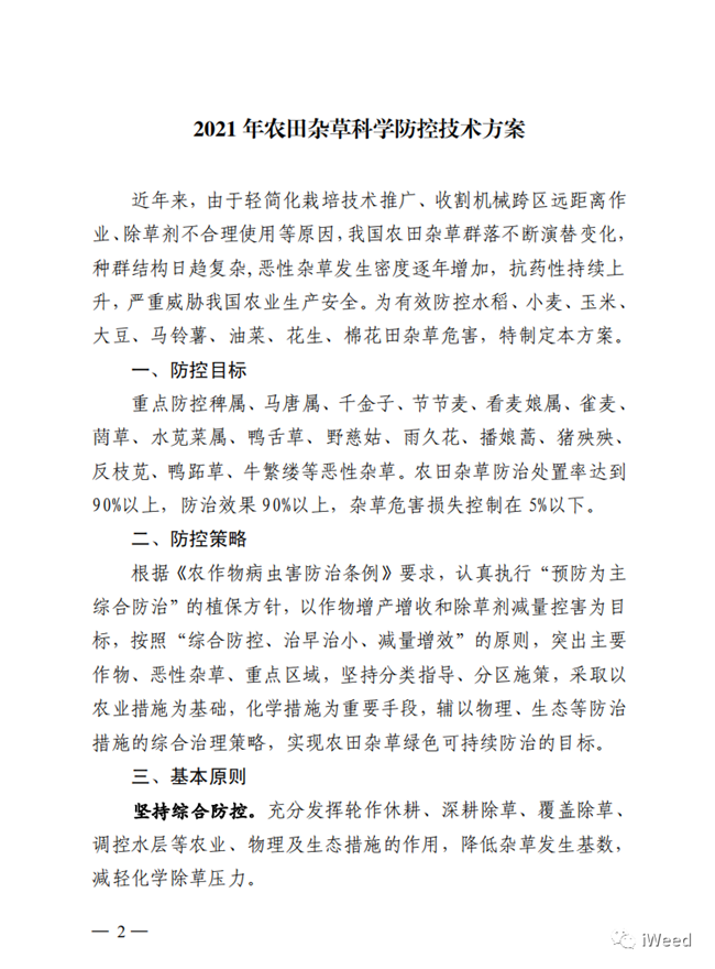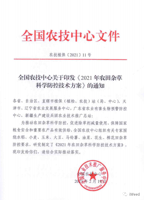 雜草是影響農(nóng)作物產(chǎn)量、品質(zhì)的重要有害生物。每年造成減產(chǎn)10-15%,發(fā)生嚴(yán)重的導(dǎo)致絕產(chǎn)?;瘜W(xué)除草以其高效、快速、低成本、減輕勞動(dòng)強(qiáng)度成為現(xiàn)代農(nóng)業(yè)雜草防控的主要手段。除草劑在世界和我國(guó)農(nóng)藥中的銷(xiāo)售份額也逐年增加,已經(jīng)占到約40%。但不科學(xué)使用除草劑也會(huì)帶來(lái)藥效差、作物藥害、雜草種群變化、成本增加、環(huán)境污染等問(wèn)題。最近,全國(guó)農(nóng)技中心組織行業(yè)內(nèi)專(zhuān)家研究制定了《2021年農(nóng)田雜草科學(xué)防控技術(shù)方案》,為水稻、小麥、玉米、大豆、馬鈴薯、油菜、花生、棉花等作物田草害防控提供了科學(xué)策略和有效措施。全文如下: