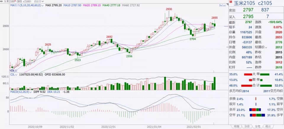 現(xiàn)貨市場(chǎng)沒有特別大的利空,剛剛公布的一號(hào)文件還提出完善玉米、大豆生產(chǎn)者補(bǔ)貼政策。鼓勵(lì)發(fā)展青貯玉米等優(yōu)質(zhì)飼草飼料,擴(kuò)大稻谷、小麥、玉米三大糧食作物完全成本保險(xiǎn)和收入保險(xiǎn)試點(diǎn)范圍,支持有條件的省份降低產(chǎn)糧大縣三大糧食作物農(nóng)業(yè)保險(xiǎn)保費(fèi)縣級(jí)補(bǔ)貼比例。不過市場(chǎng)關(guān)于禽流感的預(yù)期著實(shí)有點(diǎn)恐慌。