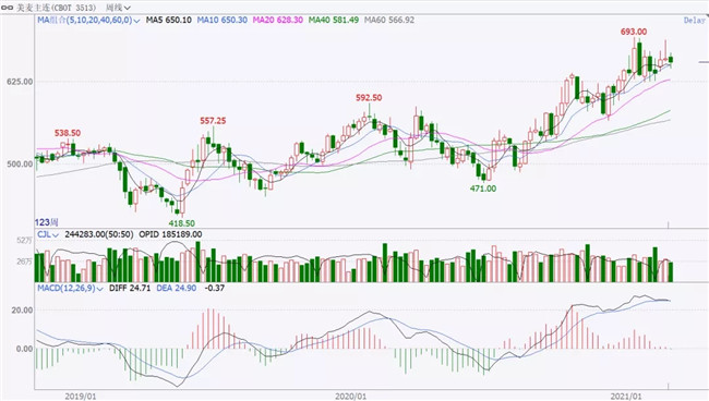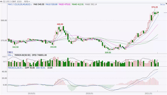 主力合約5月跳升13美分,結(jié)算價(jià)報(bào)每蒲式耳5.45-1/2美元。2月9日美農(nóng)報(bào)告發(fā)布后曾觸及2013年6月以來最高的5.74-1/4美元。