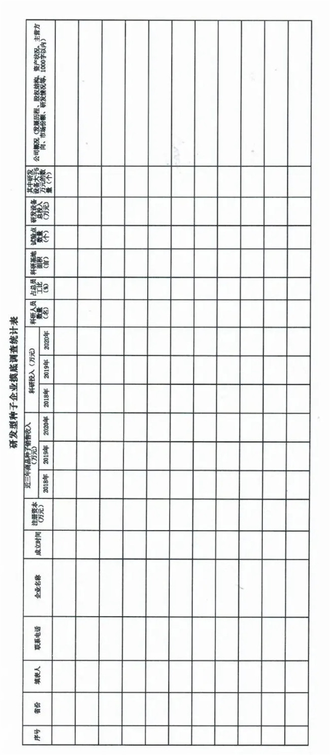 關(guān)于組織開展研發(fā)型種子企業(yè)摸底調(diào)査的通知