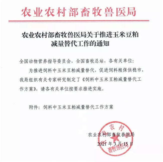 早在2020年9月,國務(wù)院辦公廳就發(fā)布《關(guān)于促進(jìn)畜牧業(yè)高質(zhì)量發(fā)展的意見》,提出要健全飼草料供應(yīng)體系,調(diào)整優(yōu)化飼料配方結(jié)構(gòu),促進(jìn)玉米、豆粕減量替代。