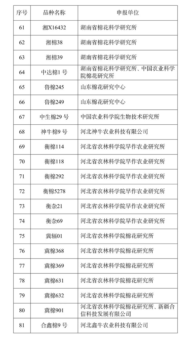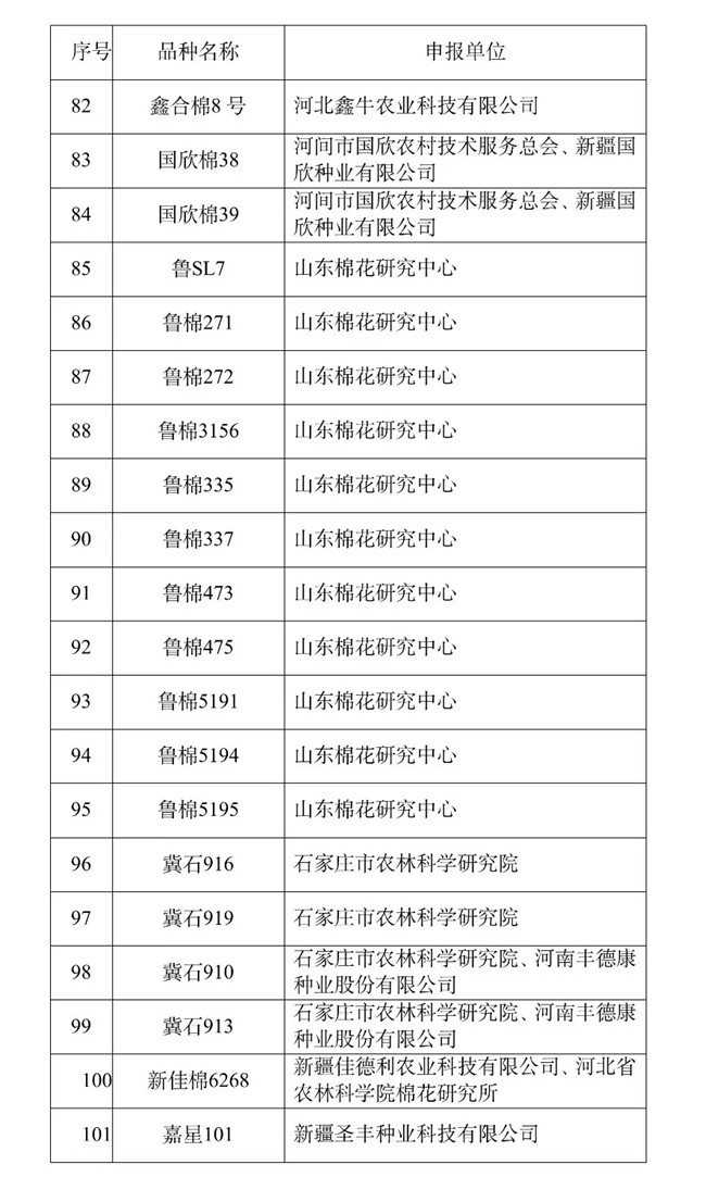 皖棉1331S等101個轉(zhuǎn)基因植物品種目錄