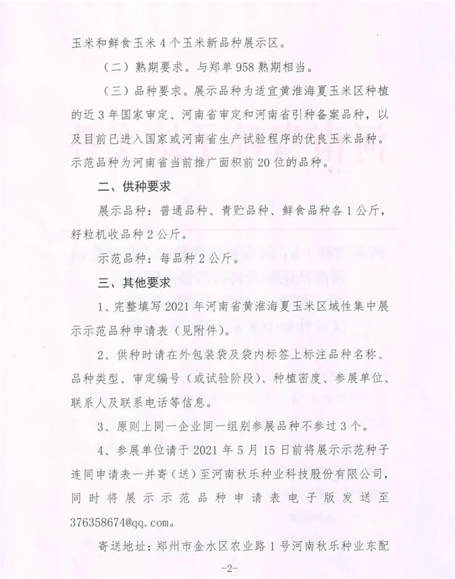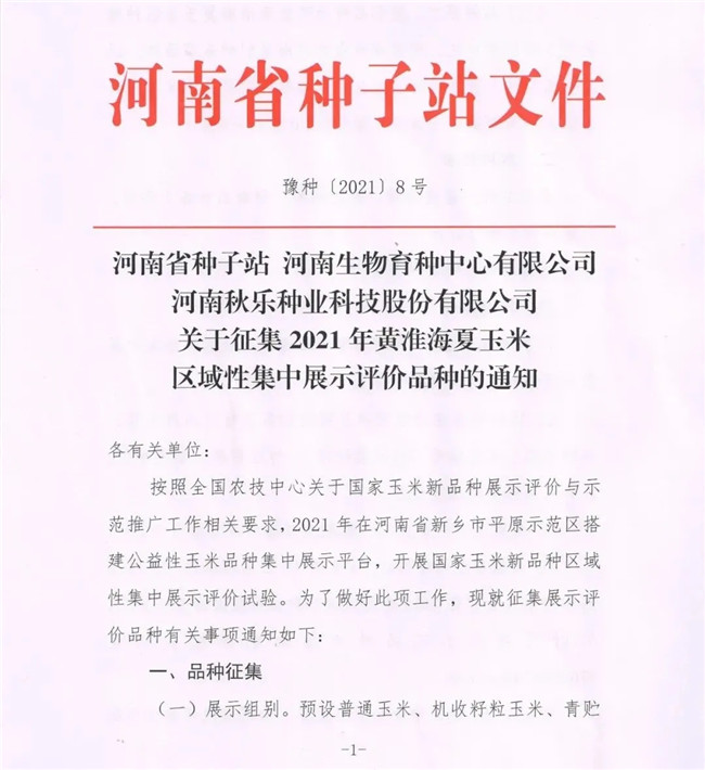 2021年黃淮海夏玉米區(qū)域性集中展示評價品種開始征集了!