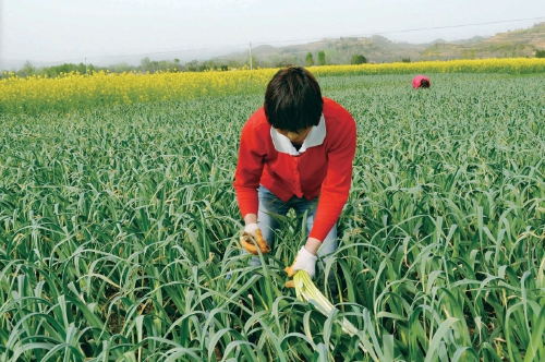 3月24日,甘肅省徽縣泥陽鎮(zhèn)農(nóng)民正在抽蒜薹。眼下,全縣3.5萬畝蒜薹已陸續(xù)上市,預計可產(chǎn)蒜薹875萬多公斤。近年來,徽縣不斷引進大蒜新品種,采用無公害種植方法提高大蒜產(chǎn)量,增加蒜農(nóng)收入。