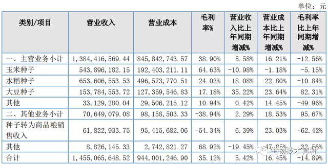 北大荒墾豐種業(yè)長年盤踞國內(nèi)種子銷售總收入榜單第二名,3月26日交出了其2020年的成績單。北大荒墾豐種業(yè)2020年實現(xiàn)營業(yè)總收入 14.55 億元,較上年同期上升 5.42%,但扣除非經(jīng)常性損益后,凈利潤降低62.2%。這主要是因為2020 年受新冠肺炎疫情影響及農(nóng)場種植結(jié)構(gòu)改變,大豆種子、水稻種子銷售量增加,玉米種子銷售量減少,導(dǎo)致總銷售收入變動,但是大豆、水稻的毛利遠(yuǎn)低于玉米毛利,導(dǎo)致營業(yè)利潤下降。