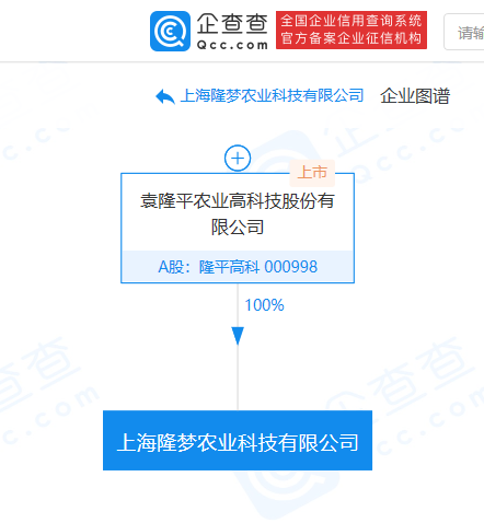 企查查APP顯示,3月25日,上海隆夢農(nóng)業(yè)科技有限公司成立,法定代表人為宮俊濤,注冊資本為1000萬元人民幣,經(jīng)營范圍包括從事農(nóng)業(yè)科技、生物科技專業(yè)領(lǐng)域內(nèi)技術(shù)開發(fā)、技術(shù)轉(zhuǎn)讓、技術(shù)咨詢、技術(shù)服務(wù)等。股權(quán)穿透顯示,該公司由隆平高科(000998)全資持股。
