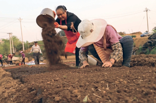 一場春雨后,新富村的春耕備耕工作開展得如火如荼,在農(nóng)技人員現(xiàn)場指導(dǎo)下,當(dāng)?shù)厝罕娪糜袡C(jī)農(nóng)家肥做營養(yǎng)塊、點(diǎn)高粱籽、培土覆土、覆蓋細(xì)土、覆蓋薄膜,在田間進(jìn)行高粱集中播種育苗。
