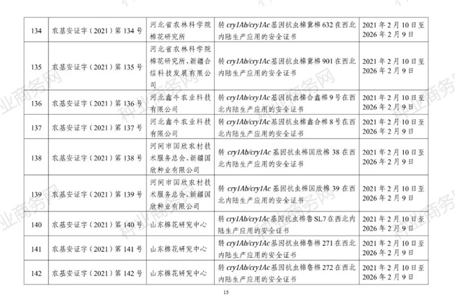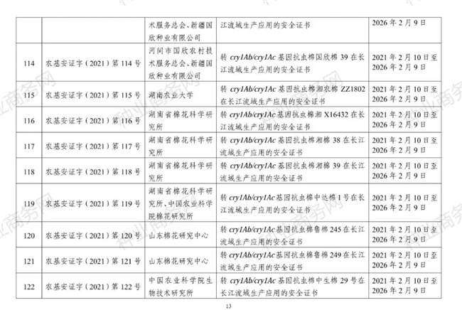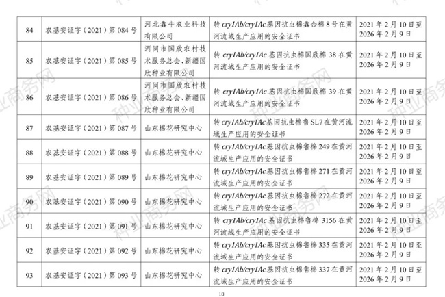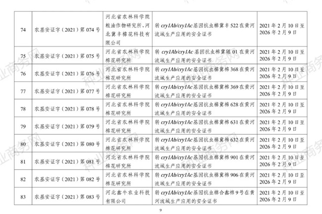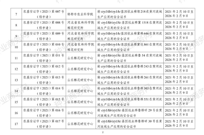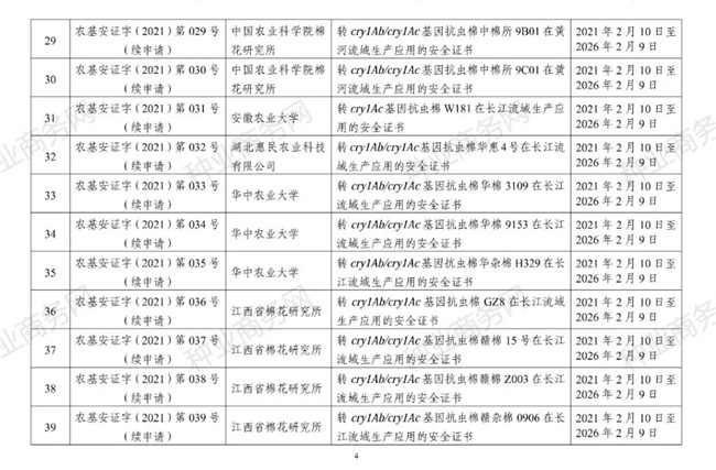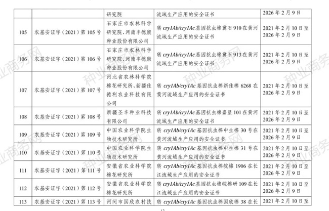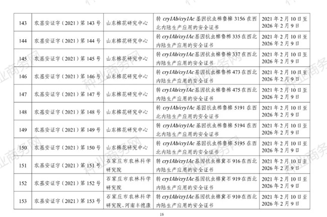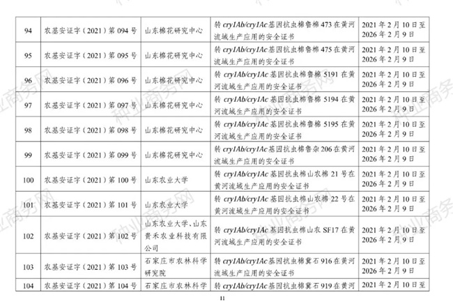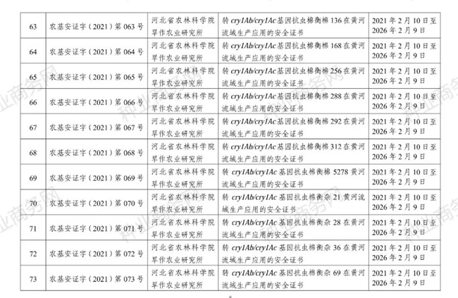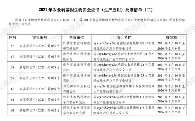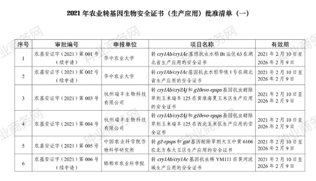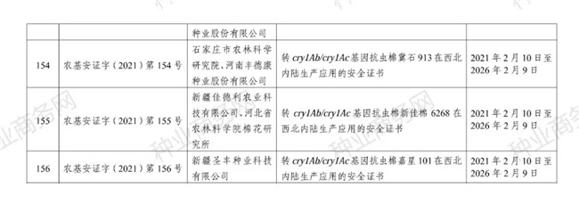 2021年農(nóng)業(yè)轉(zhuǎn)基因生物安全證書批準清單公布,共156個!