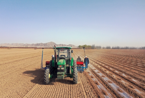 甘肅亞盛種業(yè)玉米制種基地運用衛(wèi)星導(dǎo)航系統(tǒng)農(nóng)機作業(yè)。 袁曉麗 攝