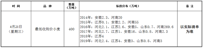 4月21日最低收購價小麥競價銷售交易公告