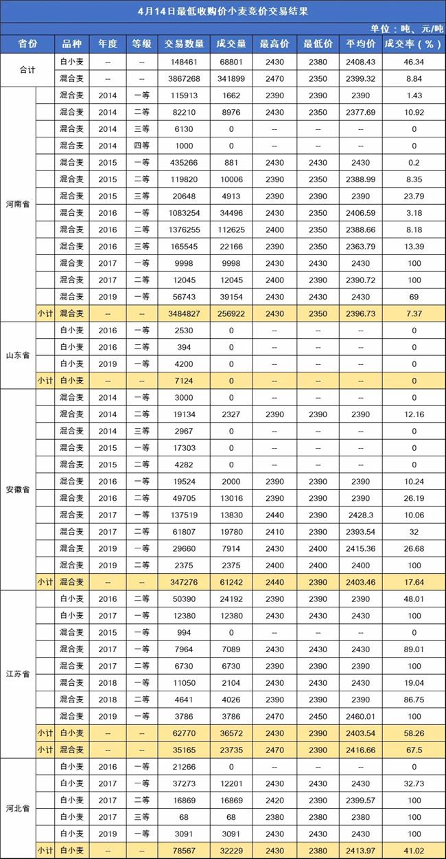 附:4月14日最低收購價小麥成交結(jié)果