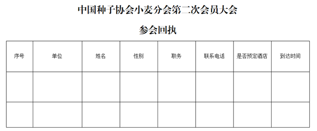 附件:1.中國(guó)種子協(xié)會(huì)小麥分會(huì)第二次會(huì)員大會(huì)參會(huì)回執(zhí)