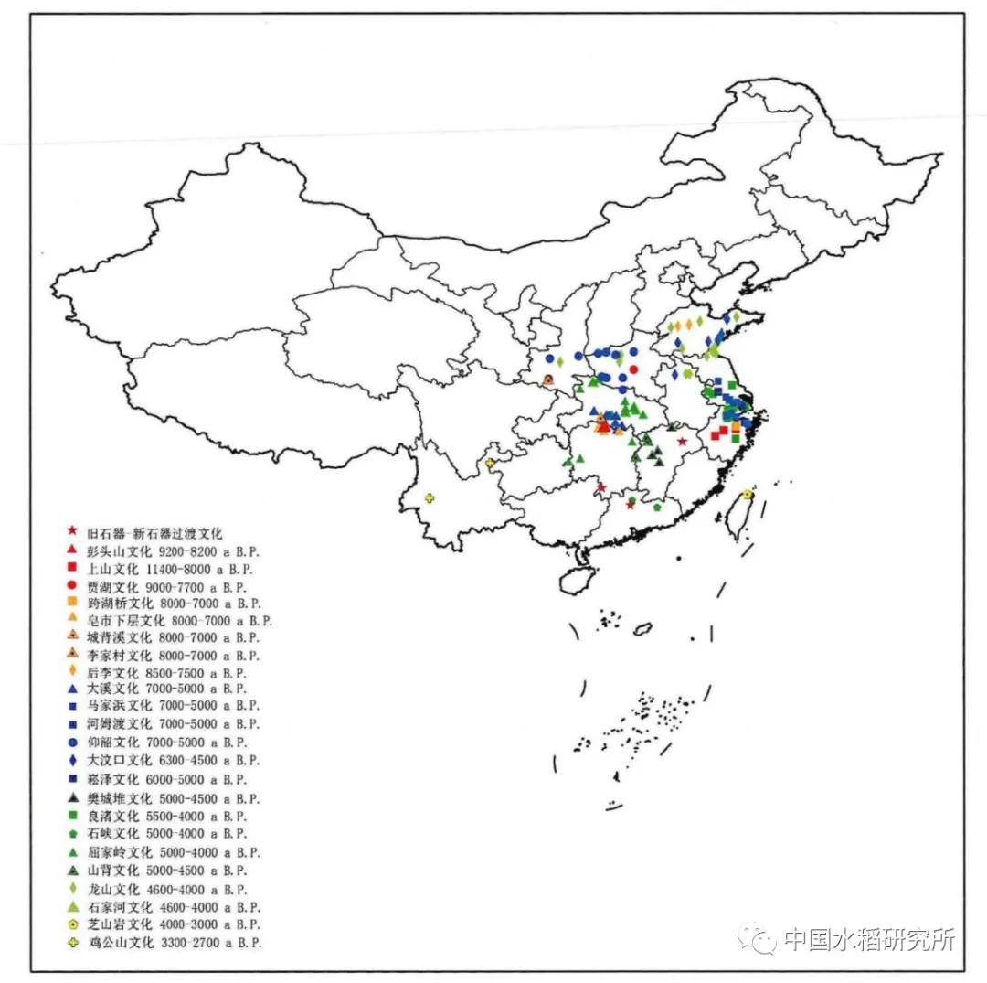圖3 中國新石器時代原始稻作文化分布圖 公婷婷等《中國水稻起源,馴化及傳播研究》