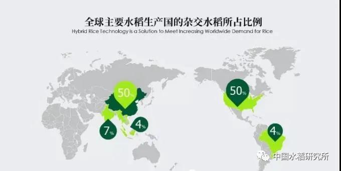 圖4 世界雜交稻種植比例分布圖。數(shù)據(jù)引自國科現(xiàn)代農(nóng)業(yè)產(chǎn)業(yè)科技創(chuàng)新研究院;數(shù)字代表每個國家雜交水稻面積占比。