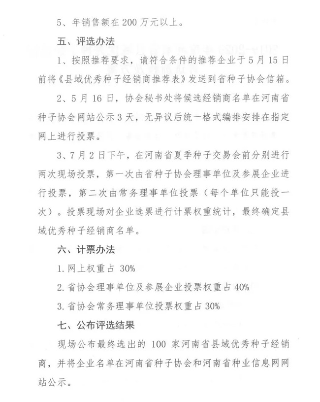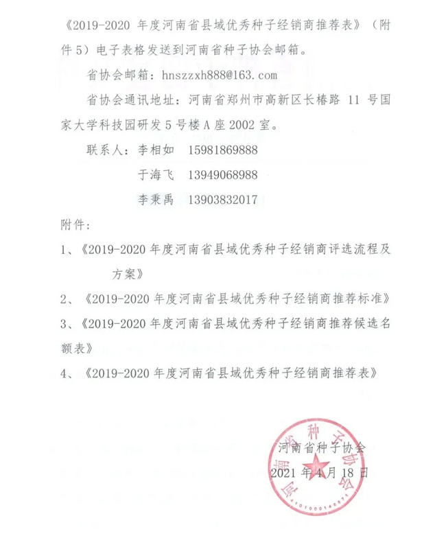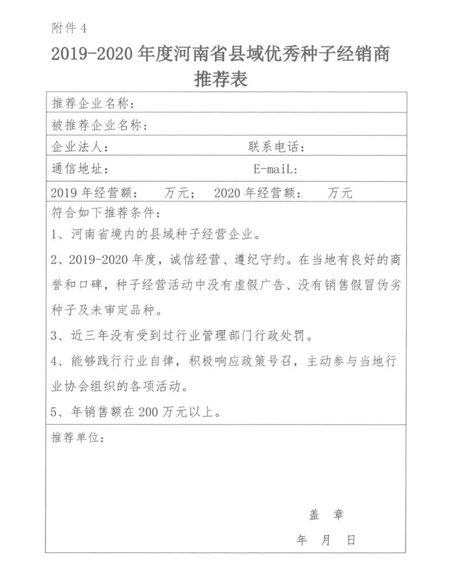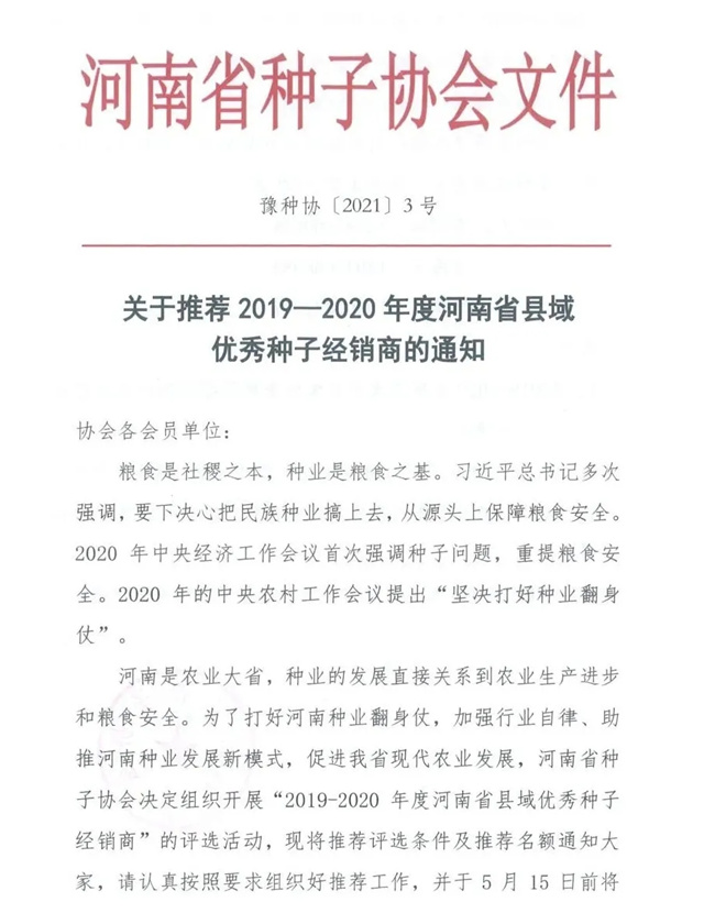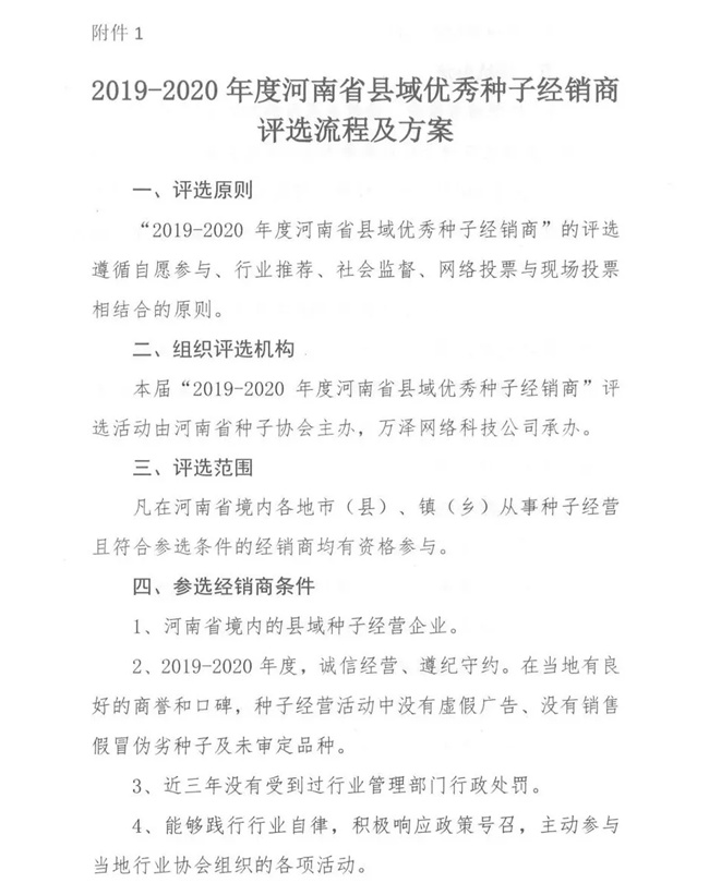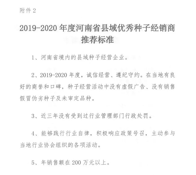 2019-2020年度河南省縣域優(yōu)秀種子經(jīng)銷商開始推薦了!