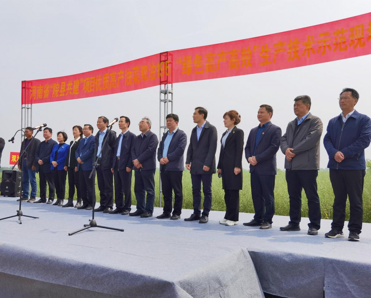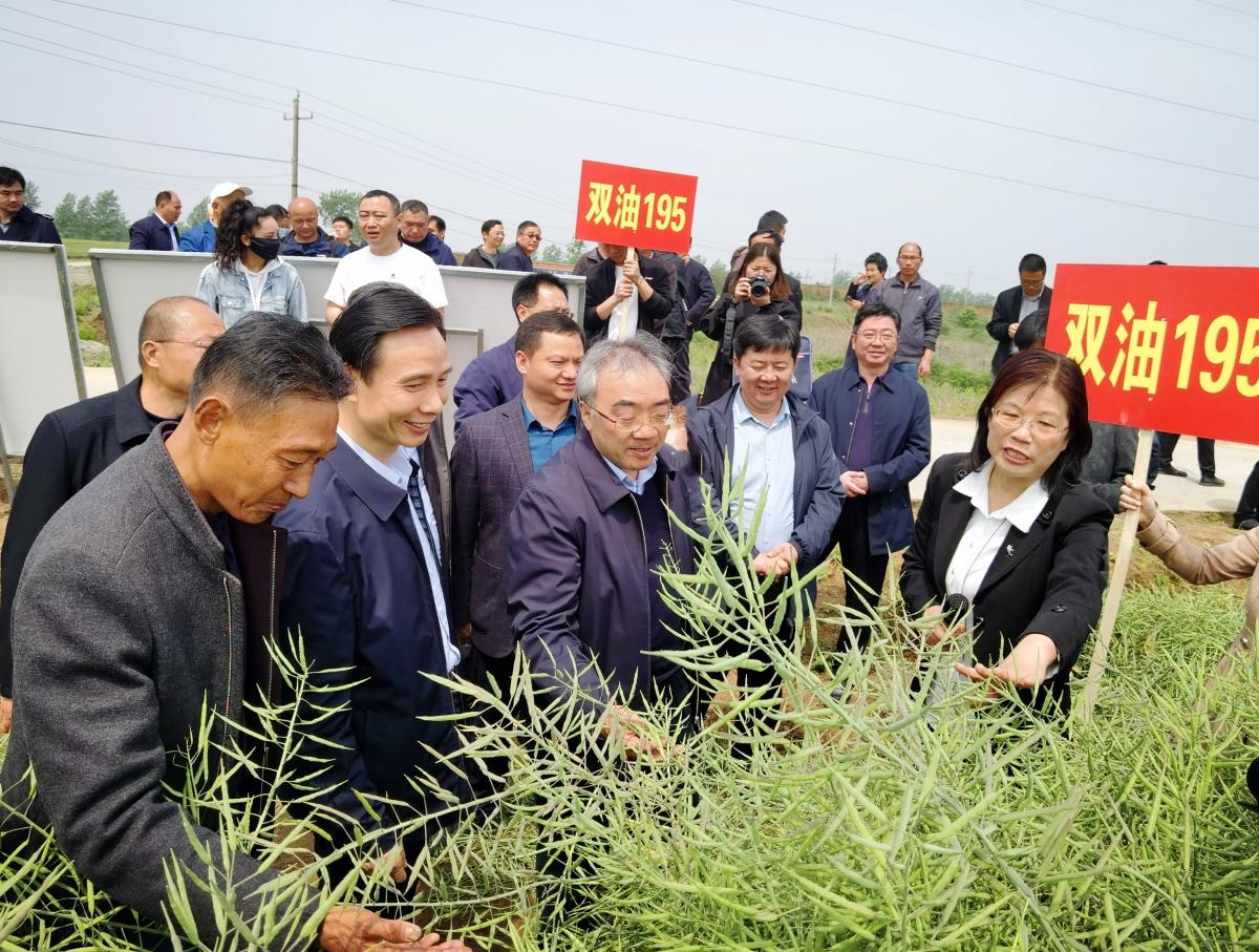 4月27日,河南省農(nóng)科院在信陽市羅山縣組織召開優(yōu)質(zhì)高產(chǎn)油菜雙油195“綠色高產(chǎn)高效”生產(chǎn)技術(shù)示范現(xiàn)場觀摩會。中國工程院院士、院長張新友、副院長衛(wèi)文星,省農(nóng)業(yè)農(nóng)村廳經(jīng)作處處長黃偉、經(jīng)作站站長鄭乃福等領(lǐng)導(dǎo)和專家出席會議并講話。