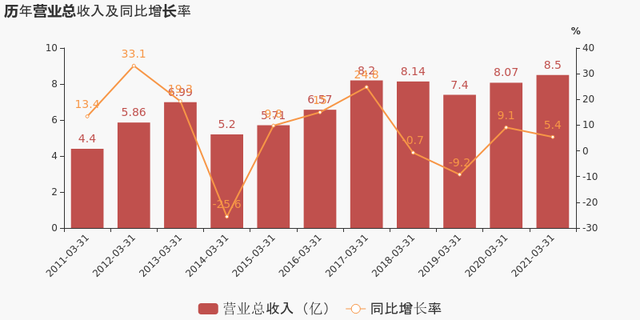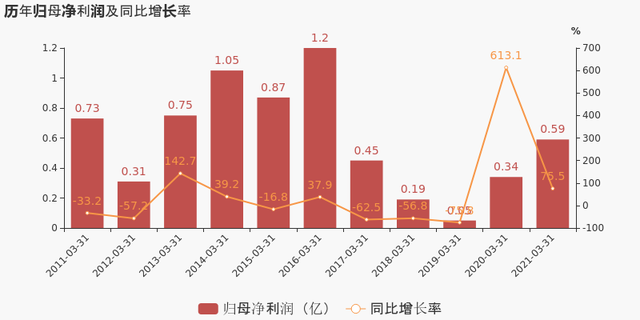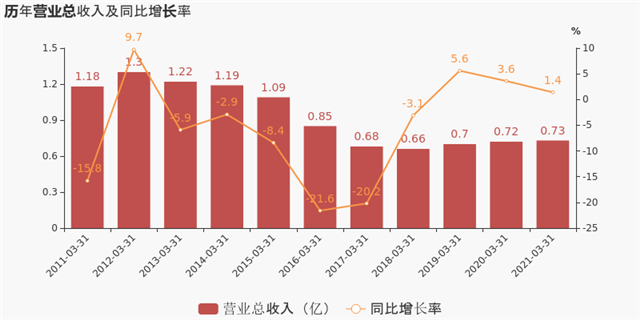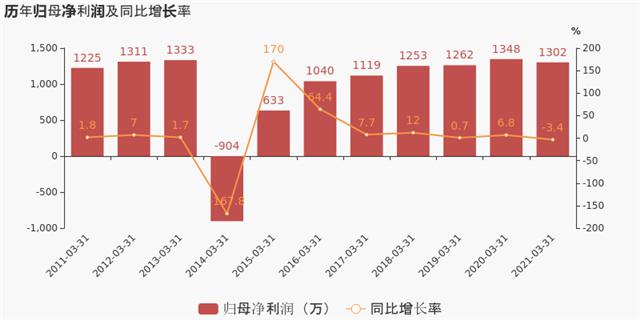 2021年一季度歸母凈利潤為1302萬元,同比下降3.4%