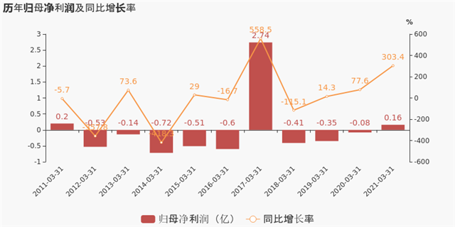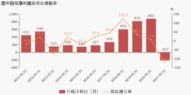 2021年一季度歸母凈利潤同比盈轉(zhuǎn)虧,虧損合計約207萬元