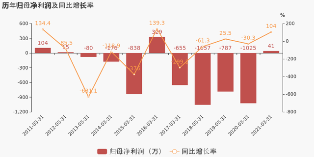 2021年一季度歸母凈利潤41.1萬元,同比扭虧為盈
