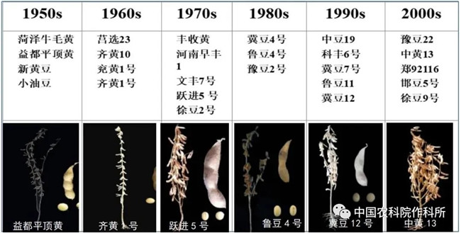圖6:黃淮海地區(qū)不同年代代表性大豆品種