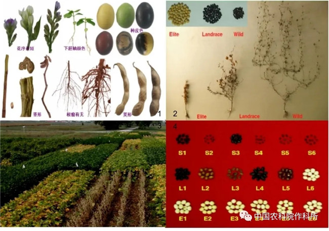 1.大豆器官形態(tài)差異2.野生大豆與栽培大豆植株及籽粒 3.大豆品種資源生育期差異4.大豆籽粒形態(tài)分類(lèi)