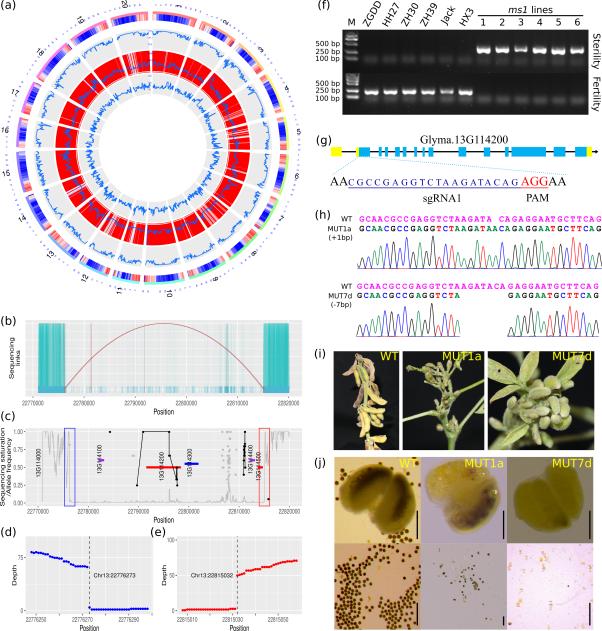 該研究針對(duì)不育基因的特點(diǎn),提出了公共對(duì)照池分子克隆策略,即利用已公開的大豆品種重測(cè)序數(shù)據(jù)作為公共對(duì)照池,以ms1雄性不育純合材料構(gòu)建突變池,通過(guò)高通量測(cè)序分析,定位了ms1基因位點(diǎn),并通過(guò)CRISPR/Cas9技術(shù),創(chuàng)制該基因編輯突變體,成功再現(xiàn)了ms1材料的雄性不育表型,從而有力證實(shí)了MS1基因突變導(dǎo)致ms1材料的雄性不育。