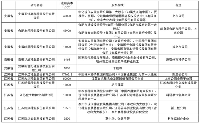 江蘇省代表企業(yè):大華種業(yè)、明天種業(yè)、中江種業(yè)、金土地種業(yè)、紅旗種業(yè)、瑞華種業(yè)等;
