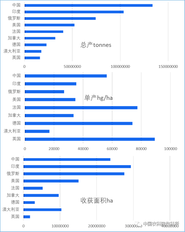 圖1 2019年主產(chǎn)國小麥生產(chǎn)情況(引自聯(lián)合國糧農(nóng)組織數(shù)據(jù))