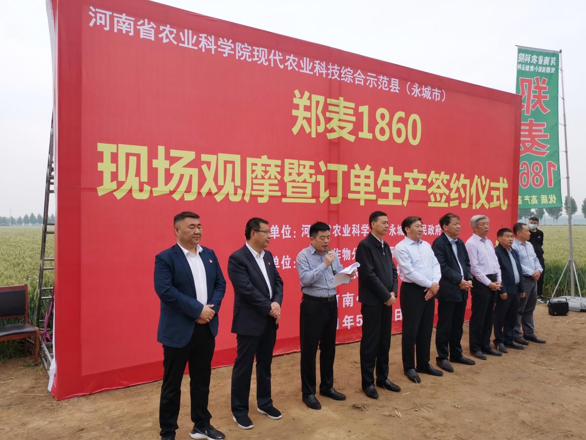 5月19日,我院在永城市舉辦鄭麥1860現(xiàn)場觀摩暨訂單生產(chǎn)簽約儀式,我院副院長衛(wèi)文星,省農(nóng)業(yè)農(nóng)村廳巡視員、省農(nóng)學(xué)會會長鄒慶鵬,永城市人民政府副市長梁廷振等領(lǐng)導(dǎo)和專家出席會議并講話。