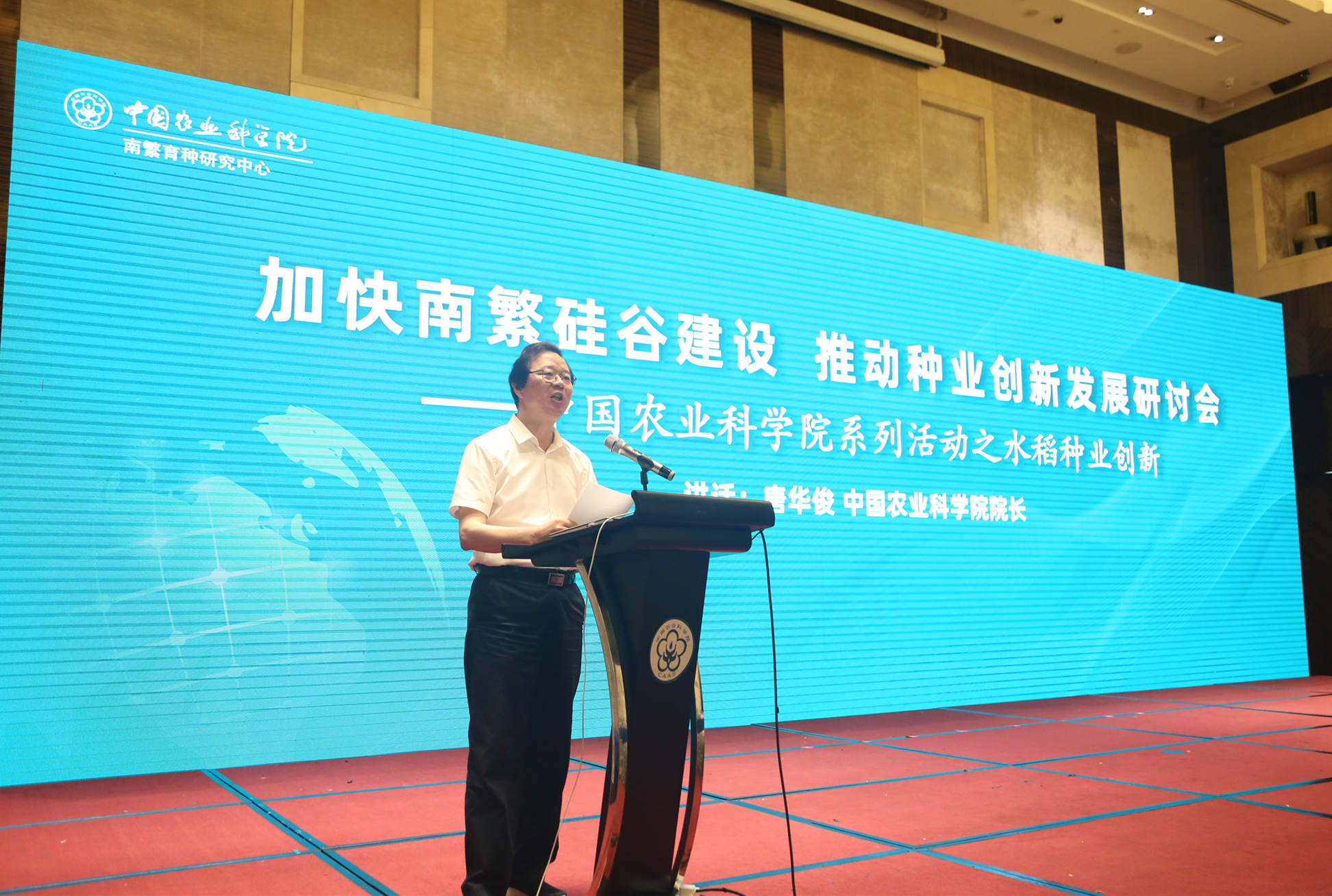 中國農(nóng)科院黨組副書記、副院長吳孔明,副院長劉現(xiàn)武分別主持會議。中國農(nóng)科院黨組成員、人事局局長陳華寧宣讀了中編辦批復文件。會議圍繞水稻種業(yè)創(chuàng)新,邀請中國工程院院士胡培松、張洪程、宋寶安,湖南亞華種業(yè)科學研究院院長楊遠柱分別就南繁育種、栽培、植保和產(chǎn)業(yè)作主題報告。