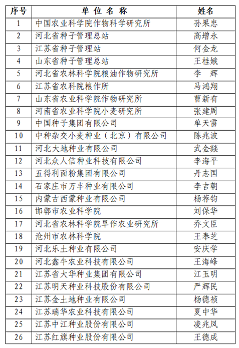 中國(guó)種子協(xié)會(huì)小麥分會(huì)會(huì)長(zhǎng)、副會(huì)長(zhǎng)名單