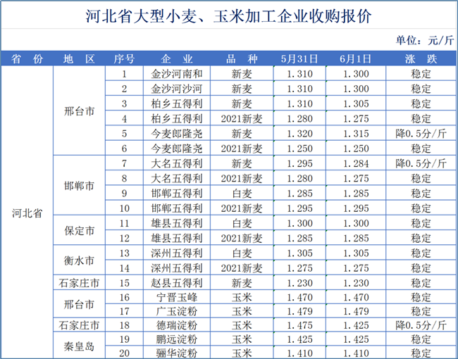 目前河北陳麥價(jià)格基本穩(wěn)定,新麥?zhǔn)召弮r(jià)格回落空間也比較小。