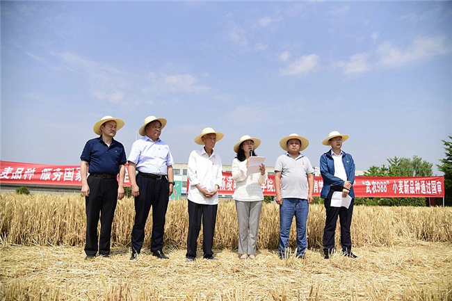 6月11日上午,楊凌職業(yè)技術(shù)學(xué)院趙瑜研究員小麥新品種新聞發(fā)布會在豆村農(nóng)場舉行。會上,發(fā)布了趙瑜團隊歷經(jīng)20多年精心培育、通過2021年國家農(nóng)作物品種審定委員會審定的“武農(nóng)981”“武農(nóng)988”兩個小麥新品種。