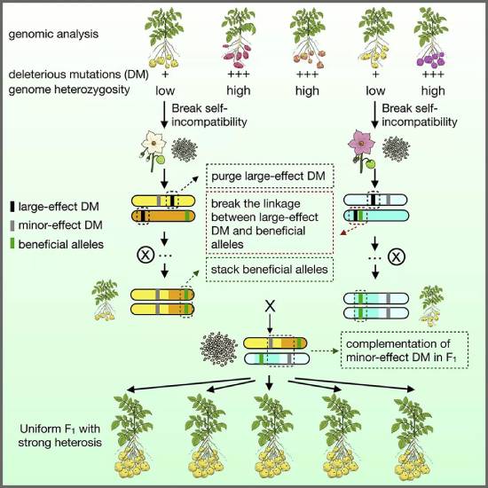 馬鈴薯,俗稱“土豆”,是世界最重要的塊莖類糧食作物,全球有13億人口以馬鈴薯為主食。但是千百年來,它的生產(chǎn)都依靠薯塊進(jìn)行無性繁殖,導(dǎo)致繁殖系數(shù)低、儲運(yùn)成本高、易攜帶病蟲害……中國農(nóng)業(yè)科學(xué)院深圳農(nóng)業(yè)基因組研究所黃三文團(tuán)隊最新研究成果一舉顛覆了這一現(xiàn)象,即應(yīng)用“基因組設(shè)計”理論和方法體系培育雜交馬鈴薯,用二倍體育種替代四倍體育種,并用雜交種子繁殖替代薯塊繁殖。