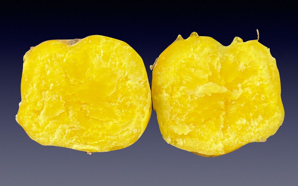 300多株新的材料,第一次在云南德宏州的大田中種植,即“優(yōu)薯1號(hào)”,2021年2月收獲,張春芝介紹,“它的干物質(zhì)含量很高,口感軟糯,顏色是深黃色,含有非常高的類(lèi)胡蘿卜素,品質(zhì)非常好,同時(shí)它的產(chǎn)量接近每畝3噸,接近主流種植的四倍體品種,高產(chǎn)的潛力很高。實(shí)現(xiàn)馬鈴薯的種子化種植后,種植1畝地只需要2克種子,而通過(guò)塊莖種植,1畝地要200公斤,這是天壤之別。”