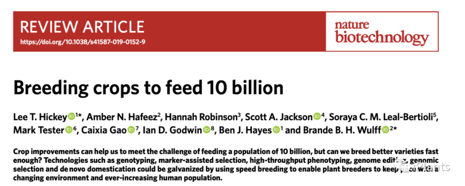 Nature Biotechnology雜志發(fā)表了來自澳大利亞昆士蘭大學(xué)的植物遺傳學(xué)家Lee Hickey題為“Breeding crops to feed 10 billion”的綜述文章,該文章綜述了如果需要養(yǎng)活100億人,那么需要哪些農(nóng)業(yè)育種技術(shù)。以下是文章的全文翻譯如下: