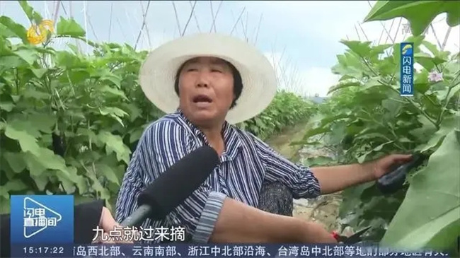 在臨沂市蘭陵縣莊塢鎮(zhèn)耿墩村茄子種植基地,村民正在忙著采摘茄子。