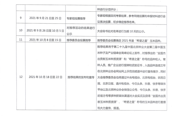 (5)公示期結(jié)束后,推薦委員會(huì)投票確定2021年度“希望之星”品種。