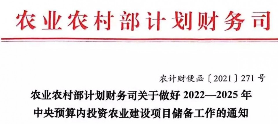 為夯實(shí)“十四五”時(shí)期農(nóng)業(yè)農(nóng)村現(xiàn)代化基礎(chǔ),全面推進(jìn)鄉(xiāng)村振興,近日,農(nóng)業(yè)農(nóng)村部計(jì)劃財(cái)務(wù)司印發(fā)《關(guān)于做好2022-2025年中央預(yù)算內(nèi)投資農(nóng)業(yè)建設(shè)項(xiàng)目?jī)?chǔ)備工作的通知》(農(nóng)計(jì)財(cái)便函〔2021〕271號(hào)),通知要求,有序推進(jìn)2022-2025年中央預(yù)算內(nèi)投資農(nóng)業(yè)建設(shè)項(xiàng)目?jī)?chǔ)備,提早做好項(xiàng)目前期工作。