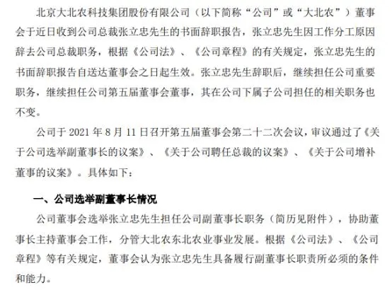 大北農(nóng)總裁張立忠辭職