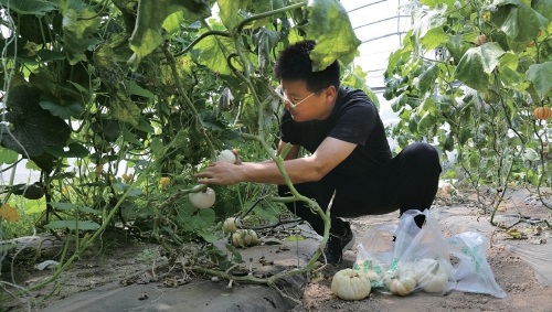 栗味南瓜大小適中、外形美觀、品質(zhì)優(yōu)良、風(fēng)味獨(dú)特,深受消費(fèi)者歡迎。近年來(lái),北京地區(qū)種植栗味南瓜的面積不斷增加,主要種植品種有貝貝、北京甜栗、蜜本及磨盤南瓜。今年,北京市農(nóng)業(yè)技術(shù)推廣站新引進(jìn)了栗味南瓜品種25個(gè),露地栽培品種17個(gè)。圖為該站在延慶區(qū)茂源廣發(fā)合作社推廣種植的貝貝南瓜,一株最多能結(jié)14個(gè),平均每株能結(jié)10個(gè)小南瓜,產(chǎn)量達(dá)到每畝超2500公斤。