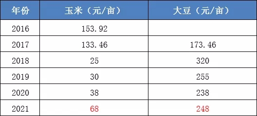 附:歷年玉米和大豆生產(chǎn)者補貼