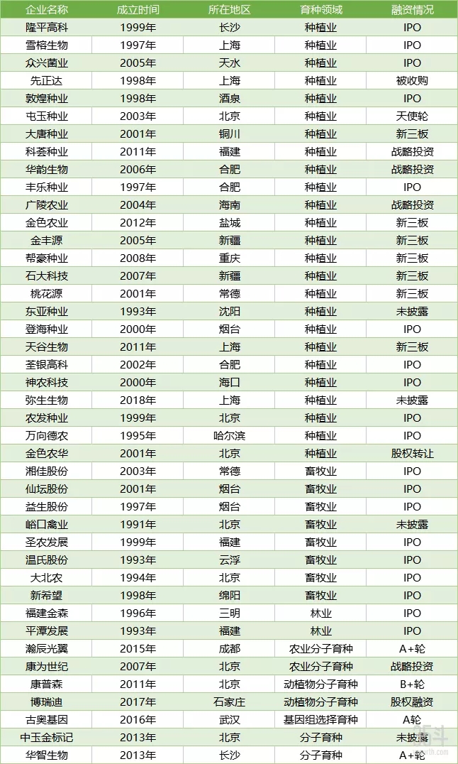 國內(nèi)種企清單(排名不分先后,未統(tǒng)計入內(nèi)的企業(yè)可聯(lián)系作者添加)