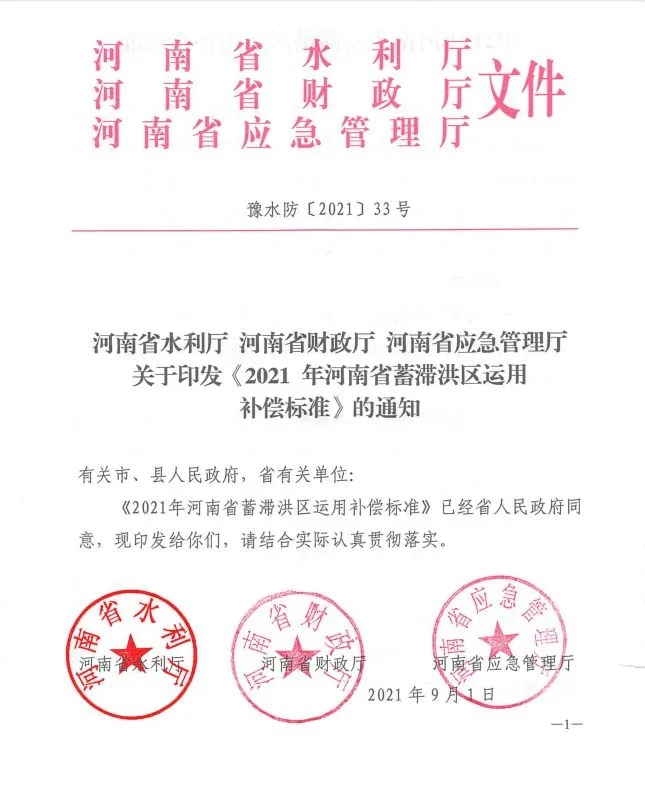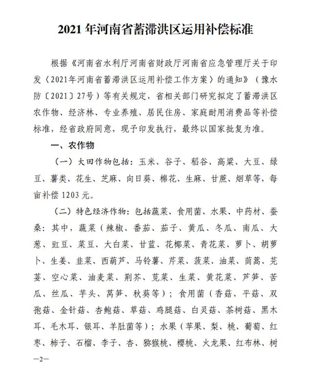 《2021年河南省蓄滯洪區(qū)運用補償標(biāo)準(zhǔn)》出爐!