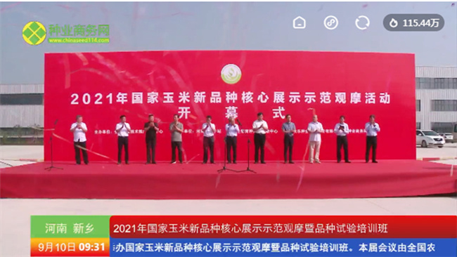 9月10日,全國農(nóng)技中心在線舉辦了2021年黃淮海區(qū)域國家玉米新品種核心展示示范觀摩活動(dòng)暨品種試驗(yàn)培訓(xùn)班。全國農(nóng)技中心副主任劉信出席活動(dòng)并講話,中國工程院院士、河南省農(nóng)科院院長張新友,河南省農(nóng)業(yè)農(nóng)村廳黨組成員、副廳長王俊忠出席活動(dòng)并致辭,全國玉米種業(yè)有關(guān)單位人員在線參加了活動(dòng),來自中國農(nóng)業(yè)大學(xué)、中國農(nóng)業(yè)科學(xué)院、北京市農(nóng)林科學(xué)院的三位專家作了精彩的授課講座。此次活動(dòng)創(chuàng)新了舉辦模式,采用 “云觀摩”、“云培訓(xùn)”的方式,在前期精心策劃宣傳的工作基礎(chǔ)上,活動(dòng)當(dāng)天網(wǎng)絡(luò)觀看人數(shù)突破120萬人,活動(dòng)規(guī)模前所未有。